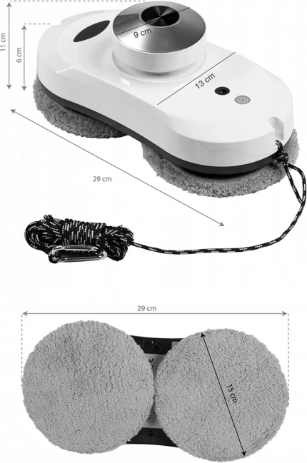 Čistič je navrhnutý pre použitie na rôzne povrchy, ako sú sklá, zrkadlá, kachličky alebo hladké steny, vďaka vstavanému vákuu. Stačí ho spustiť a užiť si voľný čas.