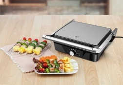 Pripravujte šťavnaté steaky v režime kontaktného grilu alebo otvorte dosky na 180° a získajte veľkú rovnú grilovaciu plochu pre zeleninu, ryby či špízy.
