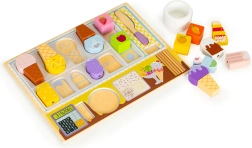Táto drevená zmrzlinová sada pozýva deti do sveta rolových hier – môžu sa stať predavačom, zákazníkom alebo malým cukrárom. Precízne vyrobené dieliky s realistickými detailmi dodávajú hraniu na opravdivosti a rozvíjajú jemnú motoriku, spoluprácu aj komunikáciu.