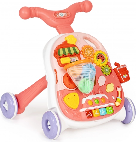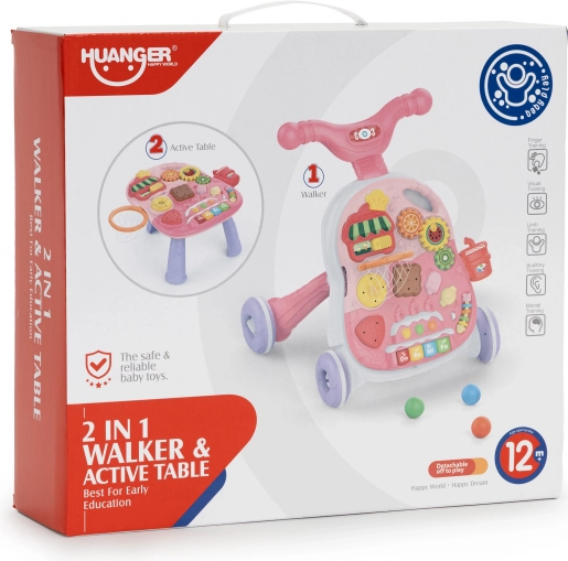 Chodítko môžete ľahko premeniť na stolík jednoduchým odňatím vzdelávacieho panela od konštrukcie chodítka a inštaláciou nôh. Vďaka tomu má vaše dieťa stolík, ktorý ho bude lákať k hre a tým rozvíjať jeho manuálne zručnosti.