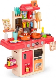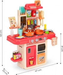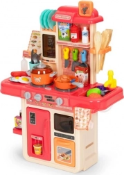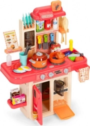 Nechajte deti variť ako dospelých. Kuchynka ponúka realistické funkcie – po zapnutí platní sa ozvú zvuky varenia, rozsvietia sa červené LED a po doliatí vody do špeciálnej platne vznikne bezpečný parný efekt. Drez s kohútikom umožňuje skutočný obeh vody, takže si malí kuchári môžu riad aj „umyť“.