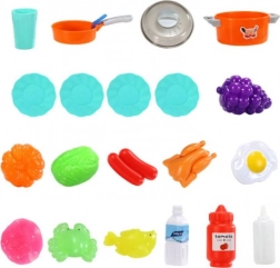 Bohatá sada 42 kusov príslušenstva zahŕňa riady, príbory, ovocie a zeleninu aj potraviny na hranie, aby nič nechýbalo na prípravu „menu“. Všetko je vyrobené z odolného plastu bez ostrých hrán, bezpečné pre deti od 3 rokov.