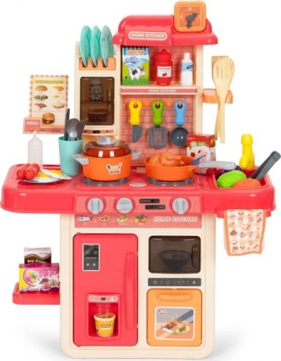 Po zapnutí platní kuchynka prehráva zvuky varenia, rozsvietia sa LED a po doliatí vody vytvorí autentický parný efekt pod pokrievkou – zážitok ako v skutočnej kuchyni.