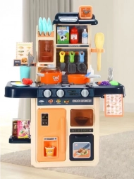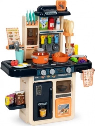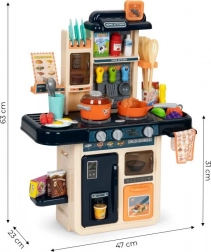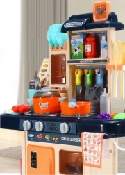 Táto moderná kuchynka pre deti ponúkne všetko, čo je potrebné na varenie „ako naozaj“. Po zapnutí horákov sa ozýva zvuk vriacej vody a rozsvietia sa červené LED. Jedinečný parný generátor vytvorí jemnú paru – stačí naliať vodu do horáka, prikryť hrncom a kúzlo môže začať. Drez s vodným dávkovačom umožní reálne „púšťať“ vodu z kohútika.