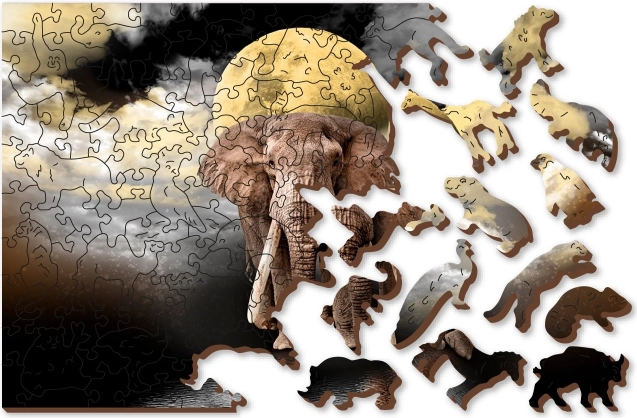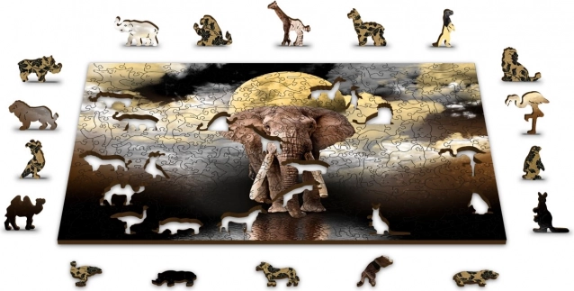 Drevené puzzle Slonie sny od značky WOODEN CITY prináša zábavu aj výzvu pre milovníkov puzzle. Toto puzzle je vyrobené z vysoko kvalitnej drevovláknitej HDF dosky a obsahuje dieliky vyrezané laserom, ktoré zabezpečujú hladké hrany bez triesok. Obojstranný dizajn umožňuje skladať podľa obrázka aj podľa tvarov.