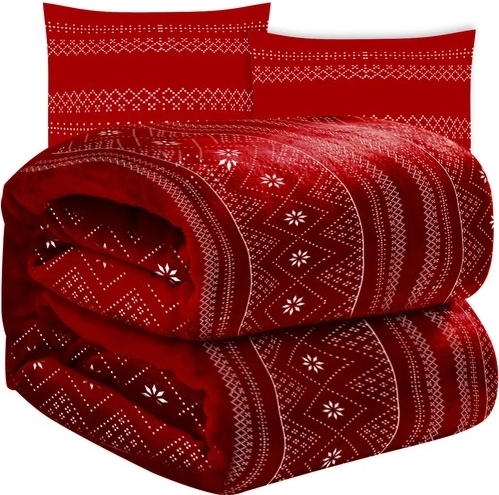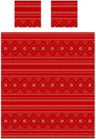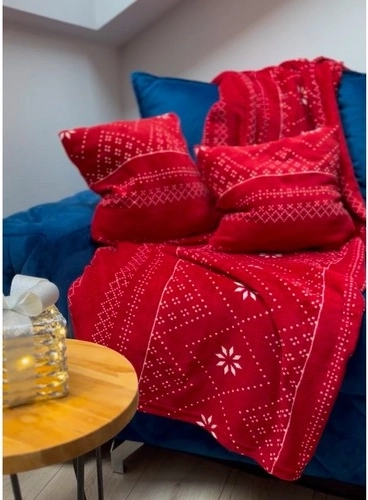 Zabaľte sa do pohodlia s touto červenou zimnou sadou: mäkká deka z mikrofleece a dve obliečky na vankúše s bielym nordickým vzorom. Vďaka jemnému mikrovláknu je deka ľahučká, hrejivá a hebká, ideálna na jesenný a zimný relax na gauči aj v spálni. Výrazný vzor dodá interiéru sviatočnú atmosféru a poslúži aj ako štýlová dekorácia či skvelý darček.