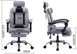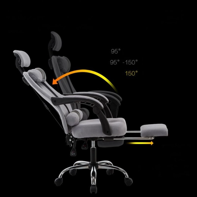 Moderné otočné kreslo s podnožkou a opierkou hlavy, ideálne do kancelárie, riaditeľskej pracovne alebo študentskej izby. Užívajte si pohodlie pri práci vďaka mäkkému a príjemnému materiálu. Ergonomický dizajn podopiera chrbát a uľahčuje dlhé pracovné hodiny.
