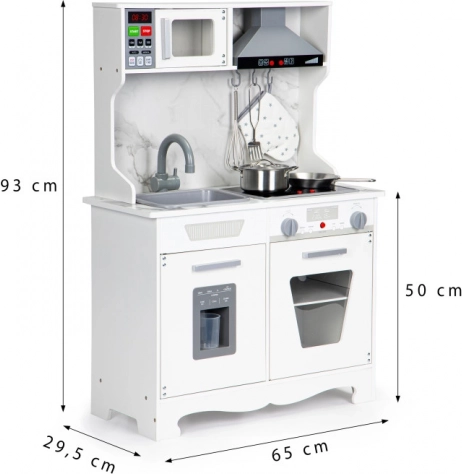 Urobte svojim deťom radosť s touto drevenou kuchynkou, ktorá napodobňuje skutočnú kuchyňu a je určená pre deti od 3 rokov. Obsahuje svetelné a zvukové efekty, ktoré zahŕňajú osvetlenie horákov a rúry s realistickými zvukmi. Deti sa môžu hrať a rozvíjať svoju fantáziu a manuálne zručnosti, bez toho aby im chýbala zábava.