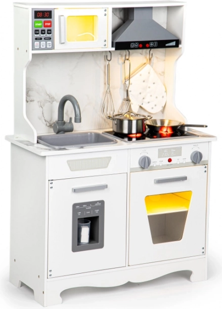 Obsahuje mikrovlnnú rúru s osvetlením a zvukovými efektmi a odsávač pary, ktorý imituje skutočný kuchynský ventilátor.