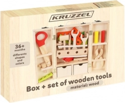 Drevená sada náradia s kufríkom je ideálnou hračkou pre malých kutilov. Kufrík je vybavený prehľadnými priehradkami pre uloženie všetkých nástrojov a je ľahko prenosný vďaka praktickému držadlu.
