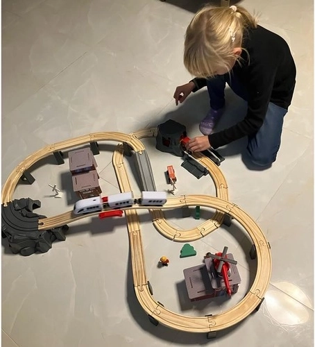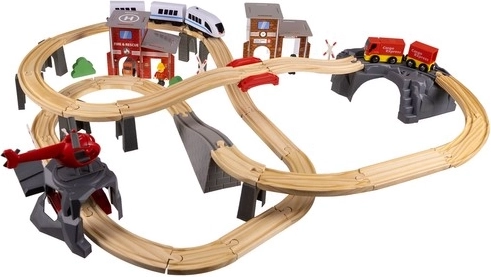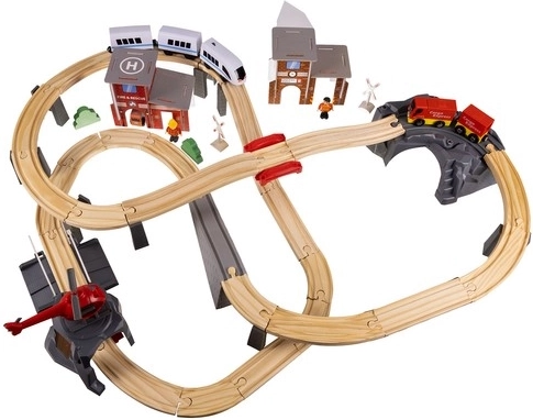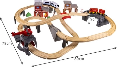 Kruzzel 22754 Drevená vláčkodráha na batérie 70 dielov, 480 cm
