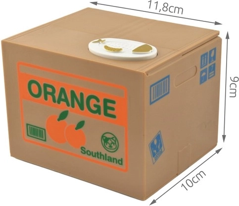 Premeňte sporenie na zábavu! Interaktívna pokladnička v štýle „krabičky s pomarančmi“ ukrýva maznavú mačku, ktorá po položení mince na tanierik vyjde, vezme mincu labkou a s radostným mňauknutím ju schová dovnútra. Deti tak majú okamžitú odmenu a motiváciu odkladať si drobné bokom.