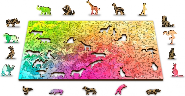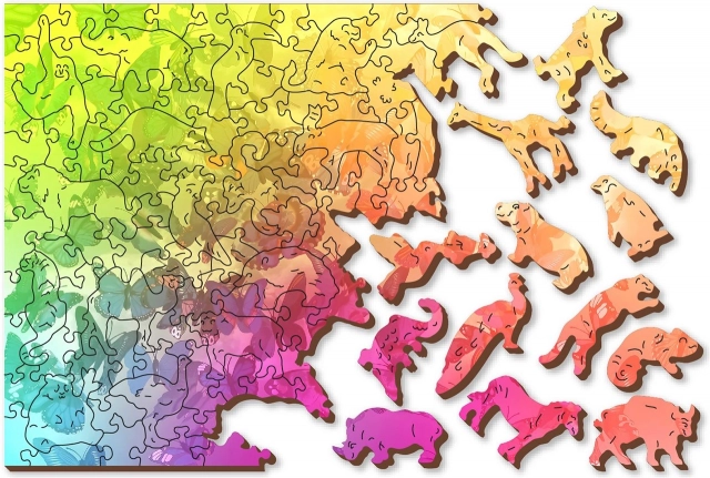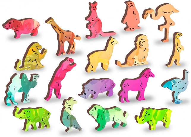 Puzzle obsahuje dieliky v tvare zvierat a predmetov, ktoré možno použiť ako malé figúrky.