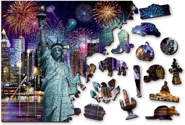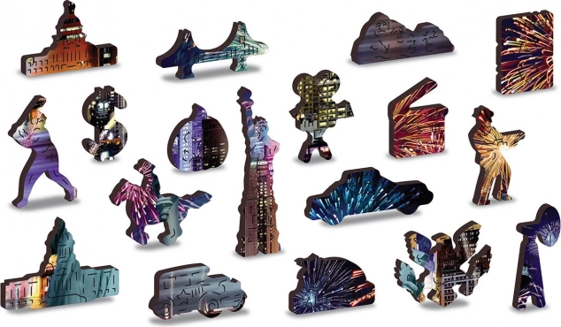 Drevené puzzle "New York v noci" ponúka nezabudnuteľný skladačkový zážitok pre všetkých milovníkov puzzle. Každý z 200 dielikov je presne vyrezaný laserom z kvalitného dreva, zaisťujúci odolnosť a precíznosť. Predná strana dielikov je zdobená detailnými obrázkami, zatiaľ čo zadná strana nesie vzor tapiet pre vyšší estetický zážitok.