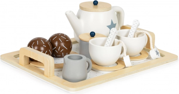 Drevená čajová súprava, kanvica, šálky, 16 prvkov ECOTOYS