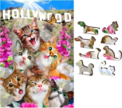 Drevené puzzle Mačiatka v Hollywoode - 2v1, 75 dielikov