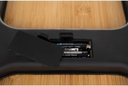 Automatické vypnutie po 8 sekundách šetrí batériu. Váha je napájaná 2× AAA a disponuje praktickým ukazovateľom ich vybitia.