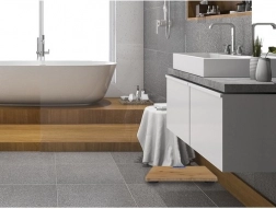 - prírodná bambusová doska ladiaca s modernou kúpeľňou