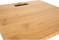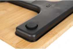 Odolná bambusová plocha príjemná na dotyk a protišmykové nožičky pre bezpečné váženie aj na hladkých dlaždiciach.