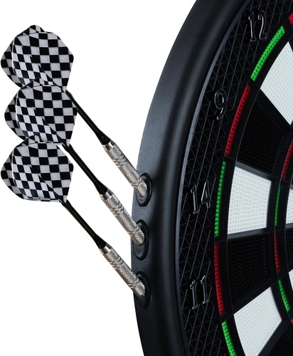 Elektronický terč na šípky TRIZAND je skvelou voľbou pre začiatočníkov aj pokročilých. Robustná konštrukcia a presná detekcia zásahov sa postarajú o férové výsledky, zatiaľ čo LCD displeje jasne zobrazujú priebeh hry a skóre hráčov aj tímov. Vďaka 27 vstavaným hrám a až 243 konfiguráciám sa nikdy nebudete nudiť.