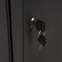 Skrinka sa uzamyká dodanými 2 kľúčmi. Pripravené otvory a montážna sada (hmoždinky a skrutky) umožnia rýchle upevnenie na stenu.