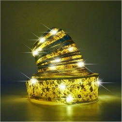 Naša zlatá LED stuha ponúka všestranné možnosti dekorácie vďaka svojej elasticite a batériovému napájaniu, ktoré umožňuje stuhu umiestniť aj na miesta bez elektrického pripojenia.
