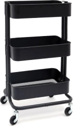 Multifunkčný, mobilný, trojúrovňový regál vám dokonale umožní využiť voľný priestor v domácnosti, kancelárii, garáži či kaderníctve. Vďaka jednoduchému dizajnu je regál univerzálny a praktický. Multifunkčný regál na kolieskach sa skvele uplatní v kuchyni alebo v špajzi ako dodatočný úložný priestor na nádoby s potravinami, poháre či čistiace prostriedky. S tromi košíkmi dosiahnete veľké možnosti skladovania. Výrobok sa výborne hodí aj do kúpeľne, kde uľahčí organizáciu kozmetiky, roliek toaletného papiera, uterákov a čistiacich prostriedkov pre domácnosť. Kovový regál môže poslúžiť aj ako zaujímavý doplnok kancelárie alebo pivnice. Multifunkčný vozík má štyri kolieska, ktoré zabezpečia ľahký presun z miesta na miesto, keď to bude potrebné. Produkt je vyrobený z kvalitného plastu, ktorý zaisťuje pevnosť, stabilitu a odolnosť.