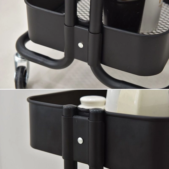 Kúpeľňový vozík, kuchynský regál s tromi priestrannými policami – čierny