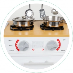 Deti milujú napodobňovanie dospelých a s touto kuchynkou sa môžu stať šéfkuchármi. Zapnutie a otočenie gombíkov na reguláciu teploty im poskytuje autentický zážitok z varenia.