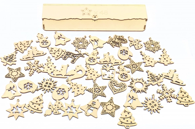 Dodajte svojmu domovu tú pravú sviatočnú atmosféru s elegantným setom drevených vianočných ozdôb. V originálnej drevenej krabičke nájdete mix 48 drobných dekorácií z topoľového dreva – vločky, zvončeky, stromčeky, anjelikov, sobov, darčeky, snehuliakov, hviezdičky, holubičky, zimné korčule aj rukavičky. Každý kúsok je ľahký, prírodný a štýlový, ideálny na zdobenie stromčeka aj sviatočných aranžmánov. Prírodný materiál, bohaté balenie 48 ks a originálna darčeková krabička poteší každého milovníka Vianoc.