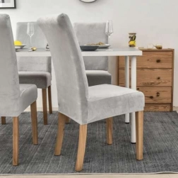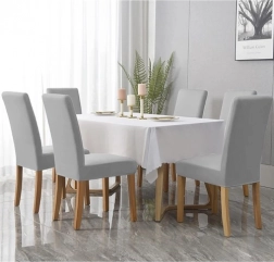 Sivý poťah na stoličku je navrhnutý tak, aby poskytoval ochranu pred škvrnami a mechanickým poškodením. Vysoko elastický materiál zabezpečuje univerzálny rozmer, ktorý sa perfektne prispôsobí väčšine stoličiek. Vďaka tomu je poťah stabilný a pevne drží na mieste.