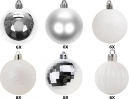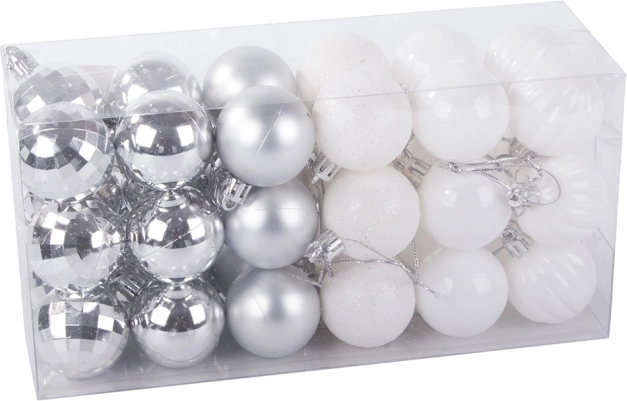 Sada obsahuje rôznorodé štýly, ktoré pokrývajú všetko od elegantných bielych až po trblietavé strieborné disko gule.
