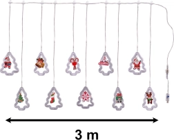 Táto vianočná LED opona je ideálna dekorácia na okno, stenu či rám dverí. Vďaka dlhému napájaciemu káblu a USB konektoru ju ľahko pripojíte do adaptéra, powerbanky či notebooku. Teplé biele svetlo a pestré obrázky SANTU, sobov a snehových vločiek dodajú interiéru jedinečný čarovný nádych.