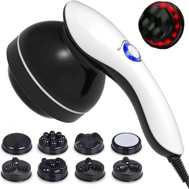 Užite si domácu wellness starostlivosť s kompaktným masážnym prístrojom 9v1. Rotačný pohyb až 3200 ot./min preniká do hlbších vrstiev pokožky, podporuje mikrocirkuláciu a pomáha cieliť na problematické partie, ako sú brucho, stehná, zadok, boky a paže. Integrovaná infračervená hlavica príjemne prehreje a zvyšuje účinok masáže.