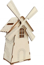Táto jedinečná drevená pokladnička v tvare mlynu kombinuje estetické potešenie s praktickým využitím. Užívajte si funkciu 2v1, kedy mlyn funguje ako dekoratívne svetlo a zároveň ako úložný priestor pre mince. Odnímateľná strecha umožňuje jednoduchý prístup k vašim úsporám.