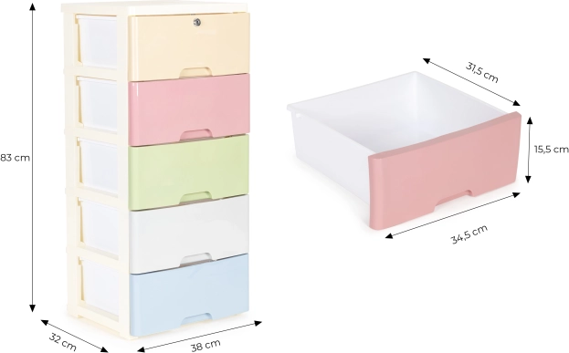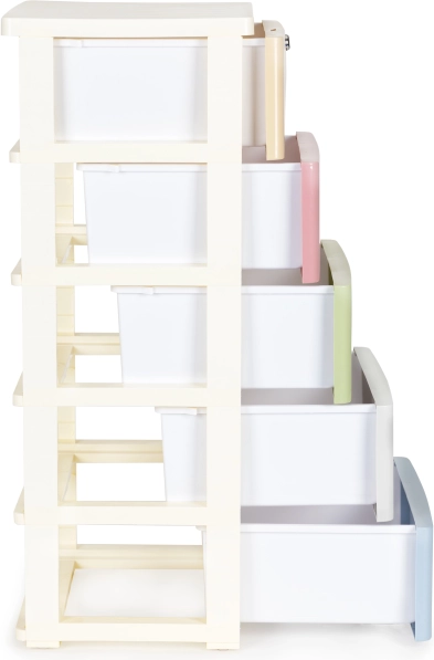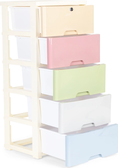 Udržte poriadok štýlovo a bez námahy. Pojazdná polica s piatimi farebnými zásuvkami je skvelá na hračky, kozmetiku aj drobné doplnky. Vďaka pevnej plastovej konštrukcii a stabilnému rámu je vhodná do detskej izby aj kúpeľne, kde oceníte ľahkú údržbu a čistý, moderný dizajn.