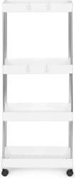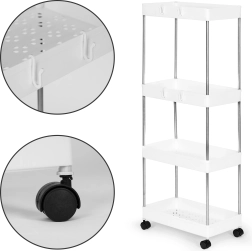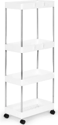 Plastový stojan do kúpeľne alebo kuchyne je ideálny pre každého, kto hľadá funkčnosť a ľahkosť v jednom. Štyri police poskytujú mnoho úložného priestoru pre rôzne potreby, od kozmetiky po uteráky a hygienické výrobky.