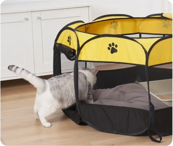 Skladacia ohrádka pre psy a mačky je ideálnym riešením pre vášho domáceho miláčika. Ponúka bezpečné, pohodlné a ľahko prenosné prostredie pre vášho miláčika, ideálne pre cestovanie alebo vonkajšie použitie.