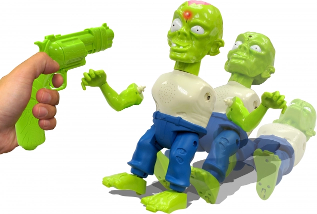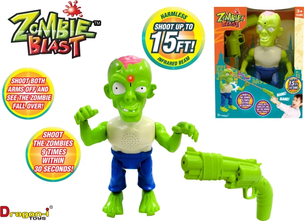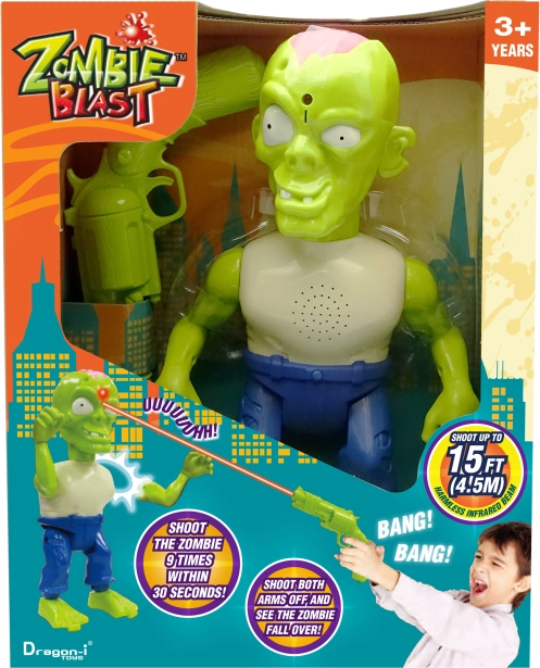 Mladí šerifi si môžu štýlovo zdokonaliť svoje koordinačné schopnosti s touto úžasnou profi streleckou sadou Zombie. Táto dôvtipná sada používa namiesto guliek infračervené lúče, takže začínajúci pištolníci môžu strieľať na ciele až zo vzdialenosti 6 m. Môžu s ňou zrážať zombie a keď zasiahnu svoj cieľ, počujú charakteristické stonanie zombie, ako odpadávajú časti tela. Je to skvelý spôsob, ako nielen podnietiť predstavivosť a podporiť hru, ale tiež zlepšiť koordináciu rúk a očí, a vďaka bezpečnému infračervenému sledovaniu cieľa je vhodná aj na použitie v interiéri
