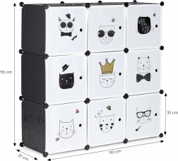 Táto modulárna skrinka je ideálna na prehľadné uloženie hračiek, kníh a drobností. Deväť samostatných kociek môžete ľubovoľne konfigurovať podľa priestoru aj potrieb dieťaťa. Ľahká konštrukcia uľahčuje manipuláciu a bezpečné používanie aj tými najmenšími.