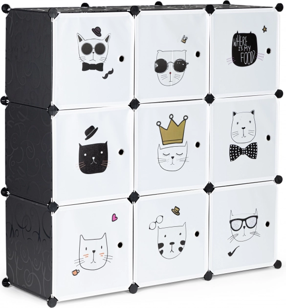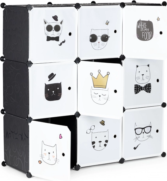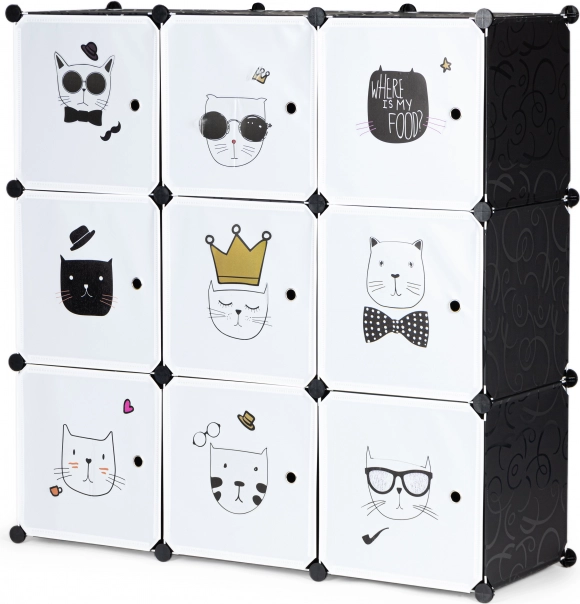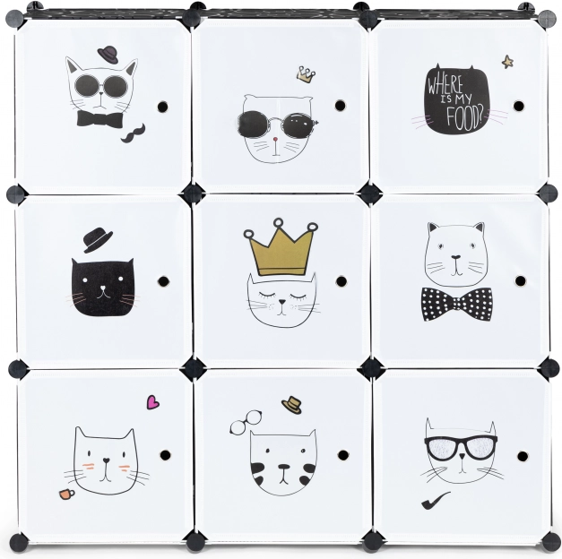 Dvierka s hravými mačacími motívmi oživia detskú izbu a motivujú deti k samostatnému udržiavaniu poriadku. Montáž je veľmi jednoduchá vďaka pevným ABS konektorom – skrinku zložíte behom chvíľky a môžete ju kedykoľvek prestavať.