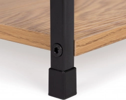 Práškovaný lakovaný kovový rám a police z MDF potiahnuté drevodekorom spájajú pevnosť s prírodným vzhľadom. Ochranné nožičky bránia poškriabaniu podlahy.