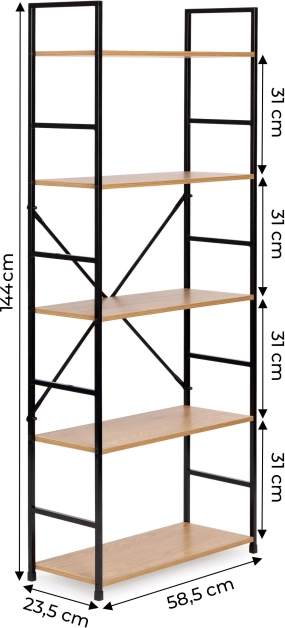Poličky sú vyrobené z MDF, pokryté dyhou, ktorá imituje drevo. Ich rozmery 56 x 23,5 cm vám umožnia uložiť všetko, čo chcete mať po ruke. Vzdialenosť medzi policami je 31 cm.