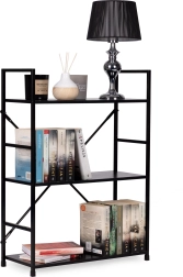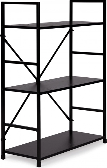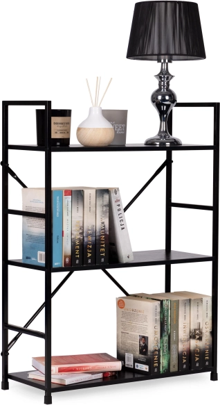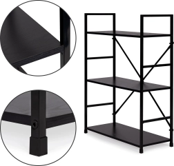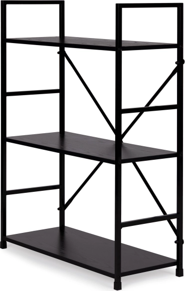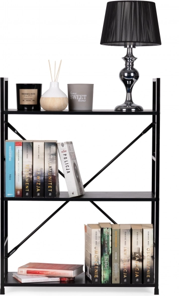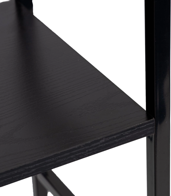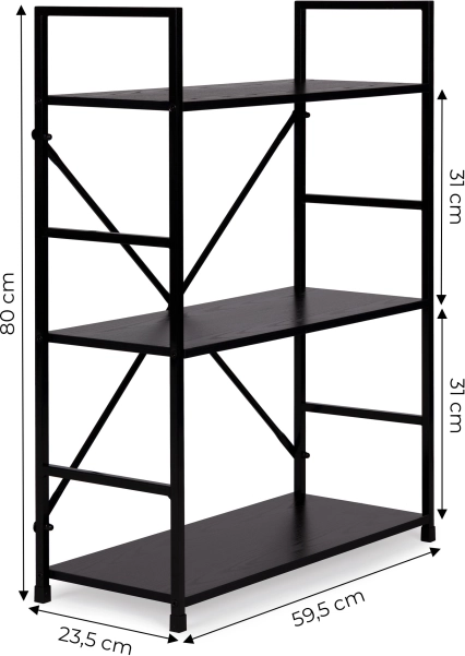 Knižnica LOFT kombinuje minimalistický dizajn a odolné materiály. Tri priestranné police z MDF s dekorom dreva dopĺňa pevná kovová konštrukcia s krížovým vystužením pre vynikajúcu stabilitu. Vďaka univerzálnemu čiernemu prevedeniu ju ľahko zladíte s modernými aj industriálnymi interiérmi.