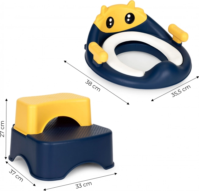Naša toaletná súprava je kombináciou kreatívneho prístupu k dizajnu s praktickým riešením pre deti, ktoré sa učia hygiene. Nielenže bude skvelou pomôckou v procese učenia, ale aj originálnym prvkom vybavenia kúpeľne. Kryt na záchodové sedátko pomôže dieťaťu postupne prejsť od plienok k používaniu toalety. Plošina zložená z dvoch schodíkov pomôže batoľaťu dostať sa na toaletu a navyše ich môže dieťa použiť aj pri iných príležitostiach, napr. keď nedočiahne na umývadlo.
