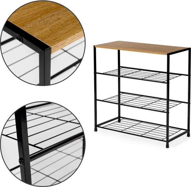 Kvalitná čierna oceľ zaisťuje pevnosť a dlhú životnosť. Botník je stabilný aj pri plnom zaťažení a ľahko sa udržiava.