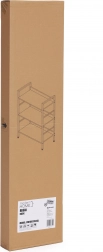Premyslené detaily zvyšujú pohodlie pri každodennom používaní: nastaviteľné nožičky vyrovnajú nerovnosti podlahy a ochranné pätky zabránia poškriabaniu. Vďaka svojmu kompaktnému pôdorysu sa polica hodí do menších priestorov a vďaka otvorenej konštrukcii pôsobí ľahko a vzdušne.