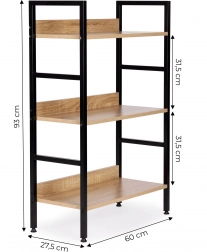 Táto trojposchodová loftová polica kombinuje prirodzený vzhľad dreva s industriálnym kovom pre nadčasový vzhľad do každého interiéru. Dosky z MDF s drevodekorom s rozmerom 60 × 27,5 cm ponúkajú dostatok miesta pre knihy, dekorácie aj praktické drobnosti, zatiaľ čo kovový rám s práškovou povrchovou úpravou zaisťuje stabilitu a dlhú životnosť.
