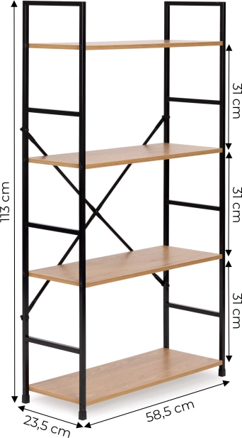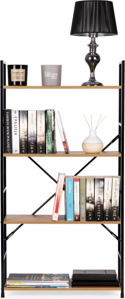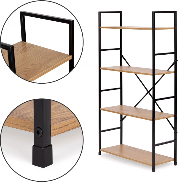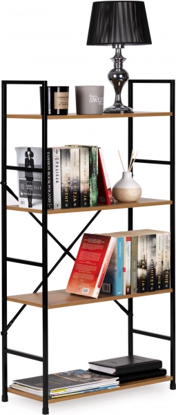 Poličky vyrobené z MDF dosky a štýlový kovový rám dodávajú knižnici moderný vzhľad vhodný do každej miestnosti.