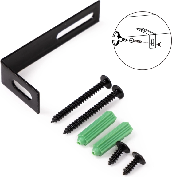 Súprava zahŕňa špeciálny uholník a skrutky na upevnenie k stene, čo poskytuje zvýšenú stabilitu a bezpečnosť, najmä ak máte malé deti. Na tento štýlový regál sa tak môžete spoľahnúť pri akomkoľvek použití.